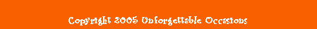 | All information collected on the Unforgettable Occasions website is confidential. We will never under any circumstances sell or reveal any personal information to third parties. Any information provided to us will be kept strictly confidential and secure. All electronic online payments are received through Paypal. You can visit the Paypal website at www.paypal.com to view their privacy and security policies or to create an account. Please contact us with any additional questions concerning the privacy or security of the Unforgettable Occasions website. |